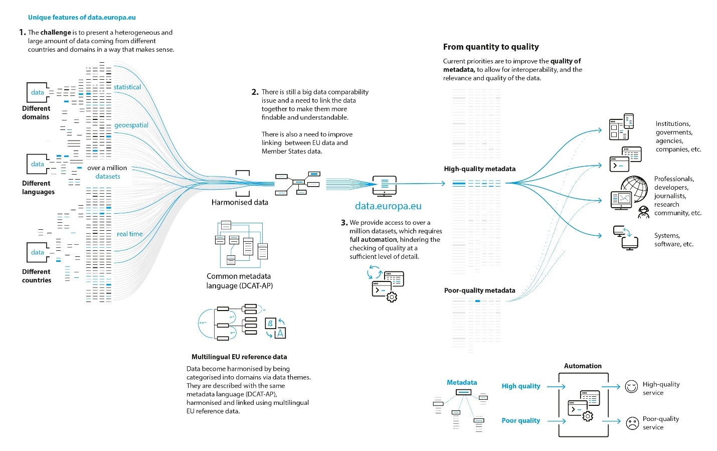 Η Ευρωπαϊκή Ένωση τα τελευταία χρόνια έχει αναλάβει έναν καθοριστικό ρόλο στην προώθηση της ανοιχτότητας και της διαφάνειας μέσω της πολιτικής για τα Ανοιχτά Δεδομένα. Στο επίκεντρο αυτής της στρατηγικής βρίσκεται ο Ευρωπαϊκός Κατάλογος Δεδομένων (European Data Portal), μια κεντρική πύλη που συγκεντρώνει και αναδεικνύει ανοιχτά δεδομένα από δημόσιους και ιδιωτικούς φορείς σε ολόκληρη την Ευρώπη.
